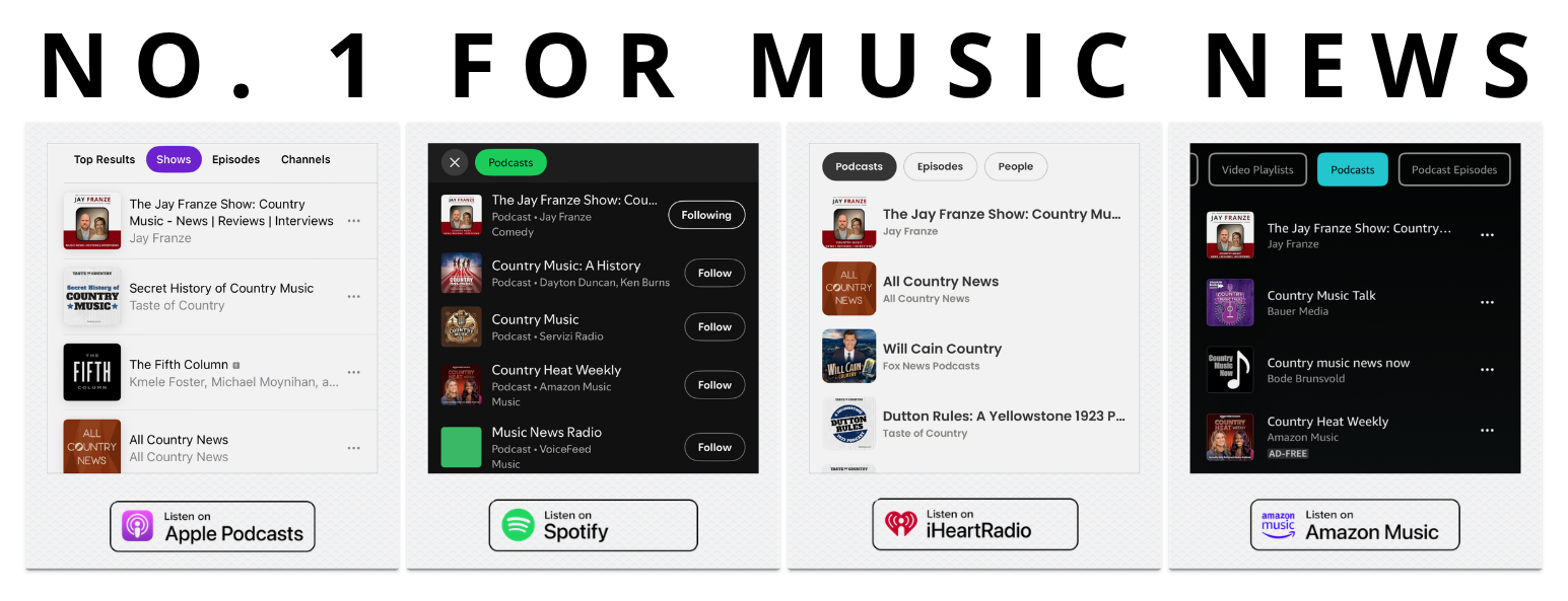 Jay Franze, host of The Jay Franze Show, has interviewed founding members of The Oak Ridge Boys, The Nitty Gritty Dirt Band, and McBride and the Ride. He has engineered projects for legendary artists such as Johnny Cash, Hank Williams Jr., and Dolly Parton and shows for renowned performers including Keith Urban, Phil Vasser, and The Wilkinsons. Jay has also written songs for NBC, HBO, and Comedy Central, including a Beatles skit on Saturday Night Live. Additionally, he is the author of several books, including Stand Out or Fade Out, Pro Tools A…Z, and Mixing A…Z.